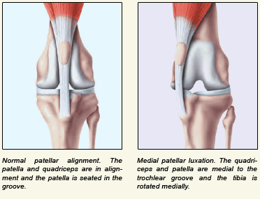 O co vlastně jde: Koleno je složitý kloub a patela je malá kostička, která dovoluje natáhnout koleno (hodně laicky řečeno). Jsou na ni upnuty svaly, které ohýbání kolena způsobují. Jestliže se stane, že koleno vykazuje abnormalitu v souvislosti s vykloubením čéšky, pes může mít postoj do O, vbočený postoj tlapek. Nejdříve nemusí mít žádné projevy postižení, ale časem poskakuje po třech, nožka zůstává viset v ohnutí, objevuje se zakňučení při poskoku - bolestivost. Diagnostika postižení je jednoduché vyšetření prohmatem kolena (čéšky). Psa není třeba uspávat ani rentgenovat. Rozlišují se čtyři stupně luxace patelly.